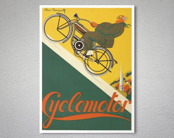 Cyclemotor Vintage Bicycle Poster Poster Print Sticker Or Canvas Giclee Print Gift Idea Christmas Gift