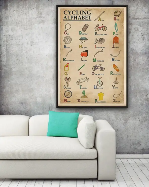 Cycling Alphabet Poster Cycling Art Illustrated In The Uk Vintage Poster Wall Art Decor Poster No Frame Canvas Wall Art Gift For Farmer