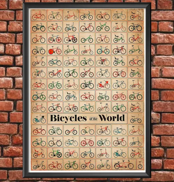 Cycling Bicycles Of The World Poster Framed Matte Canvas