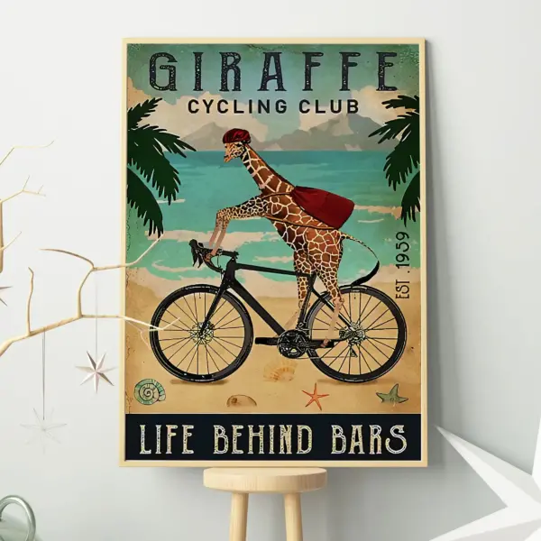 Cycling Club Giraffe Poster Giraffe Cycling Club Life Behind Bars Poster Funny Giraffe Poster Cycling Lover Poster