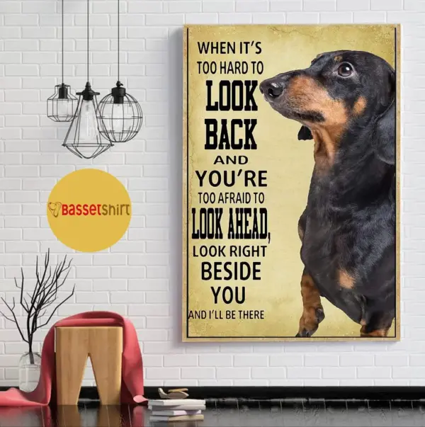 Heartwarming dachshund poster featuring an emotional message of friendship and loyalty, perfect for dog lovers and home decor enthusiasts.