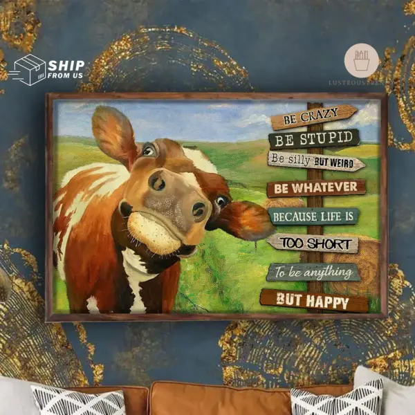 Dairy Cattle Dairy Cow Poster Farmer Farming Gifts Be Crazy Be Stupid Funny Poster Wall Art Print Home Living Decor Poster