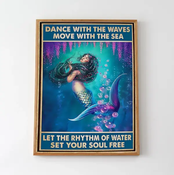 Dance With The Waves Move With The Sea Poster Mermaid Painting Mermaid Poster Mermaid Wall Art Best Gift For Mermaid Lover