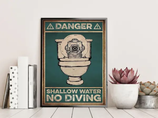 Danger Shallow No Diving Poster Funny Shallow Water Art Print Swimming Injury Wall Art Bathroom Decor Bathroom Sign Art Best Gift Ever
