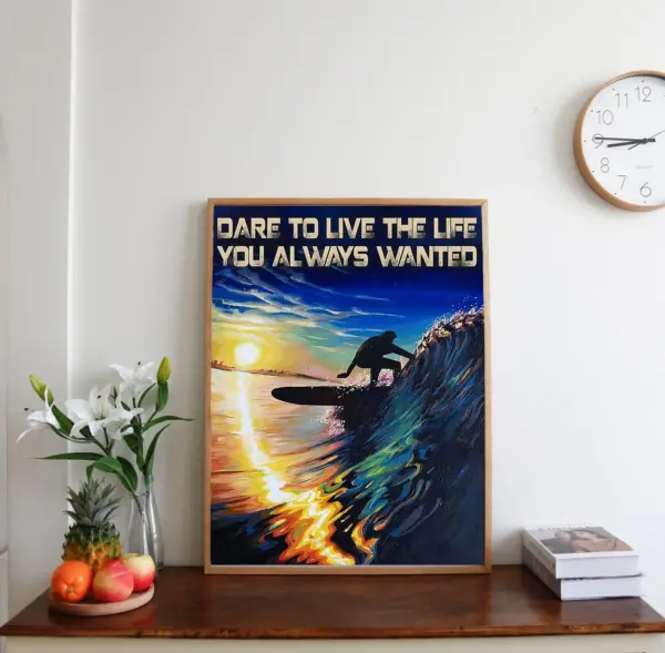 Dare To Live The Life You Always Wanted Poster Beach Wall Art Surfing Girl Poster Surfing Poster Surfing Wall Art Love Surfing