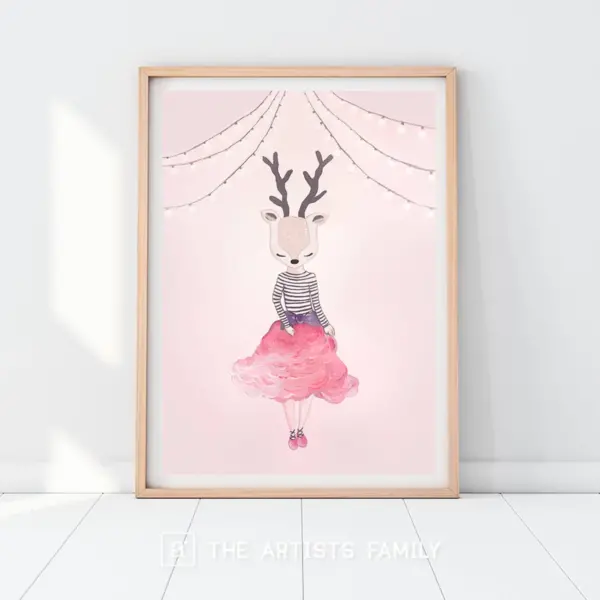 Deer Print Downloadable Prints Blush Pink Dancer Painting Illustration Wall Art Modern Girls Kids Baby Room Printable Nursery Circus Animal