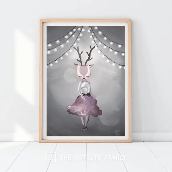 Deer Print Downloadable Prints Painting Prints Illustration Art Prints Wall Art Modern Girls Prints Kids Prints Printable Nursery Dark Grey