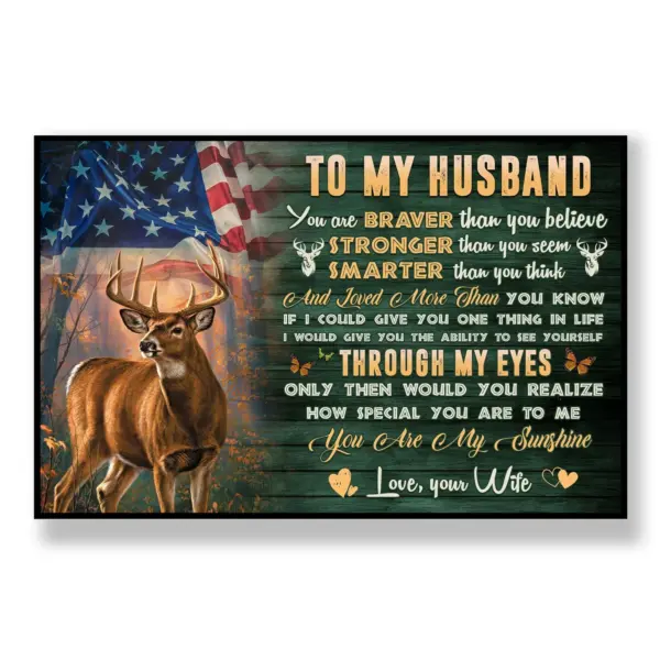 Deer To My Husband Poster Braver Stronger Smarter American Flag Art Print Deer Hunting Gift For Husband Us Deer Hunter Husband Wife