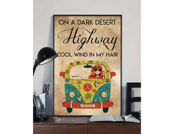 Desert Highway Peace Hippie Girl Poster Hippie Lover Hippie Poster Hippie Art Print Wall Decor Home Decor Art Print