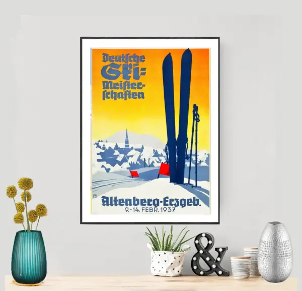 Deutsche Ski Meister Schaften Altenberg Vintage Travel Poster Poster Paper Sticker Or Canvas Print Gift Idea
