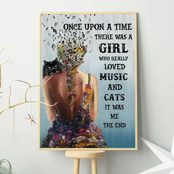 Dictionary Once Upon A Time Loved Music And Cats Vertical Poster Cat Poster Vintage Poster Cat Art Print Music Lover Poster