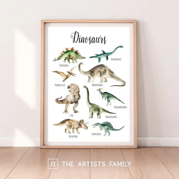 Dinosaur Downloadable Prints Watercolor Montessori Educational Posters Kids Boys Girls Children Rooms Learning Painting T Rex Dino Wall Art