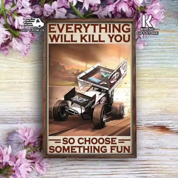 Dirt Track Racing Racer Everything Will Kill You So Choose Something Fun Poster Home Living Wall Art Print Decor Poster