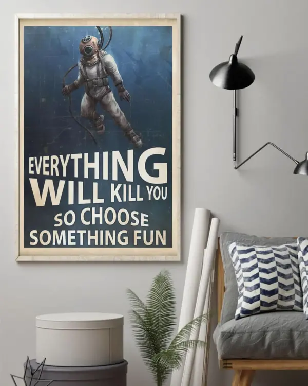 Diver Everything Will Kill You So Choose Something Fun Poster Ocean Home Living Decor Poster Scuba Diving Wall Art Ocean Canvas Poster
