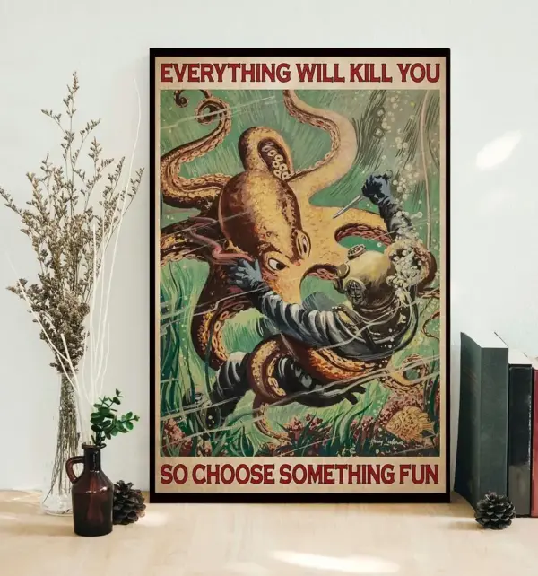 Diver Octopus Everything Will Kill You So Choose Something Fun Canvas