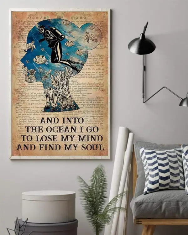 Diving Girl Poster And Into The Ocean I Go Lose My Mind And Find My Soul Print Love Ocean Poster Girl Loves Diving Art Lovely Girl Art