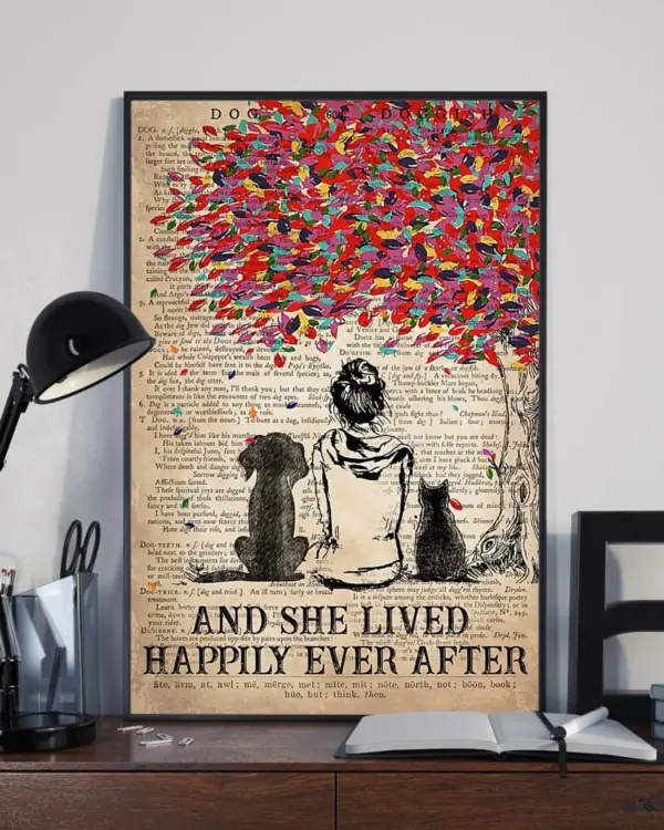 Dog And Cat Happily Ever After Poster Wall Poster Retro Style Funny Kitty Poster