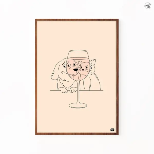 Dog And Cat Wall Art Cat And Wine Cat And Dog Poster Funny Dog Art Kitchen Wall Art Wine Lover Gift Animal Art Print Wine Above Bed Decor