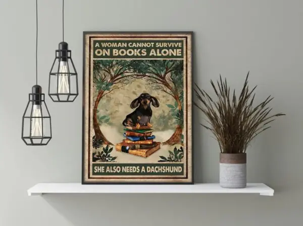 Dachshund Lover's Bookworm Poster - Dog & Reading Gift