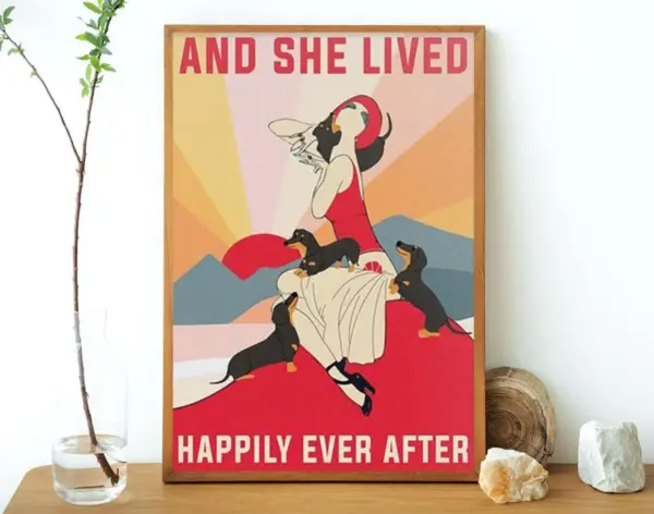 Dog Poster Girl Dog Poster And She Lived Happily Ever After Poster Girl Loves Dog Poster Vintage Dog Poster Dog Lovers Gift No Frame