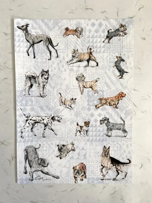 Dog Print Cat Illustration Nature Print Wall Art Water Colour Art Pattern Print Pattern Dog Poster Home Decor