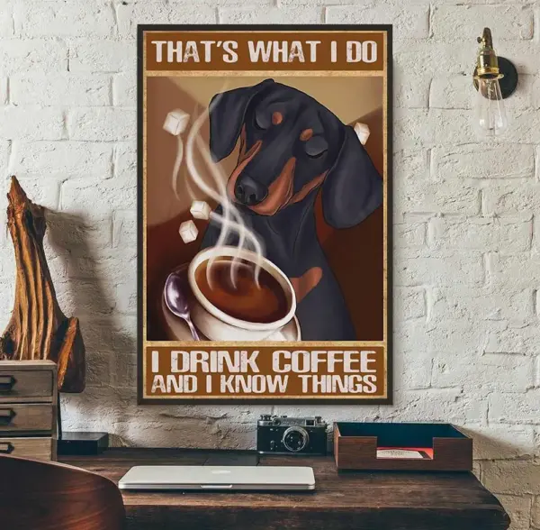 Dog Thats What I Do I Drink Coffee And I Know Things Satin Poster Canvas