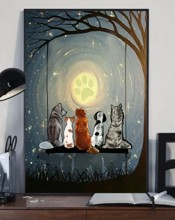 Dogs Watching The Moon Poster No Frame Dog Print Wall Art Funny Dog Poster Dog Lover Gift Moon Lovers Moon Paws Dog Poster 32