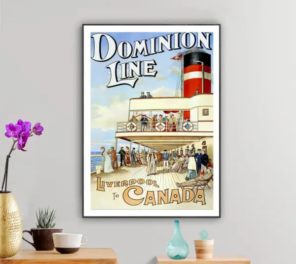 Dominion Line Liverpool To Canada Vintage Travel Poster Poster Paper Sticker Or Canvas Print Gift Idea