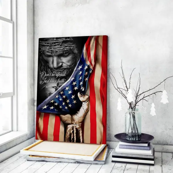 Don T Be Afraid Just Have Faith Wall Art Jesus Wall Art American Flag Canvas Poster Christian Wall Decor 4Th July Wall Art