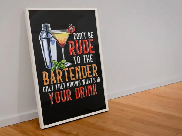 Don T Be Rude To The Bartender Only They Know What S In Your Drink Alcoholic Wall Art Mixology Poster Punny Canvas Art For Home Bar