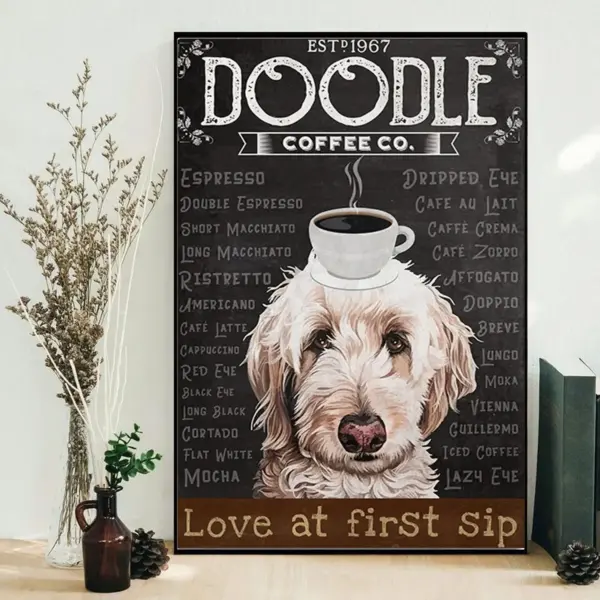 Doodle Poster Dog Lover Poster Love At First Sip Poster Dog Cafe Poster Cafe Decor Home Warming Gift Birthday Gift