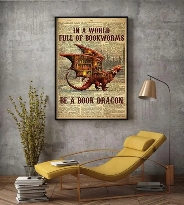 Dragon Book Poster Book Dragon Poster Dragon Poster Book Lover Gift Book Lover Gift Book Worm Gift Vintage Poster 285 285