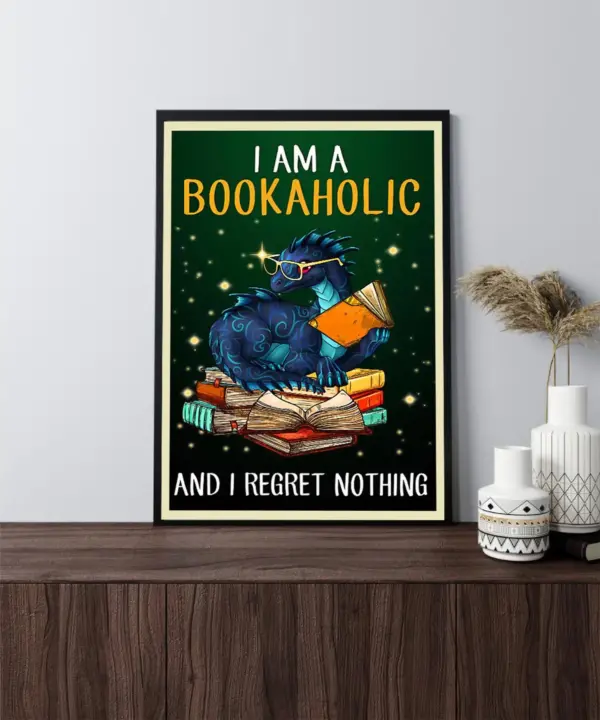 Dragon I Am A Bookaholic Poster Dragon Art Print Dragon Lover Gift Love Reading Art Book Artwork Vintage Poster Signs For Home