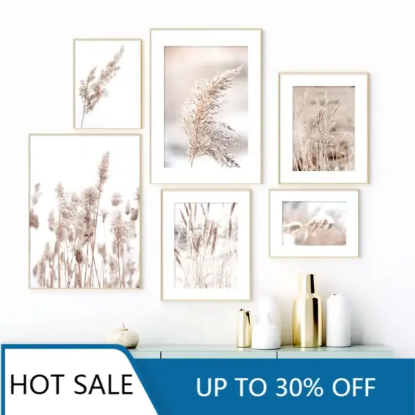 Dried Flower Plant Beige Reed Wheat Nordic Canvas Only