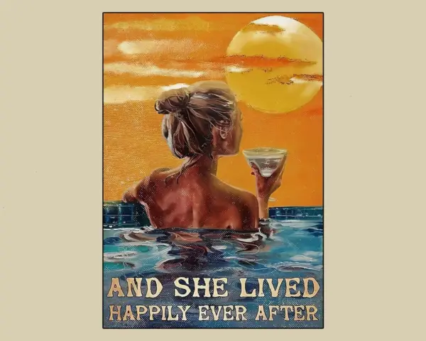Drink Wine Look Moon Sea Beach Women Relax And She Lived Happily Ever After Fan Lover Poster Art Print Wall House Office Decor For Home