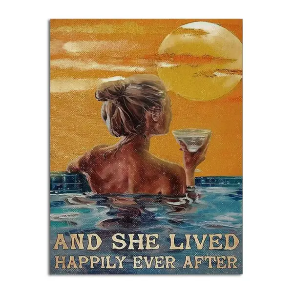 Drinking Swimming Happily Ever After Poster Love Wine Poster Love Drinking Wine Poster Summer Time Drinking Wine Poster Vintage Summer