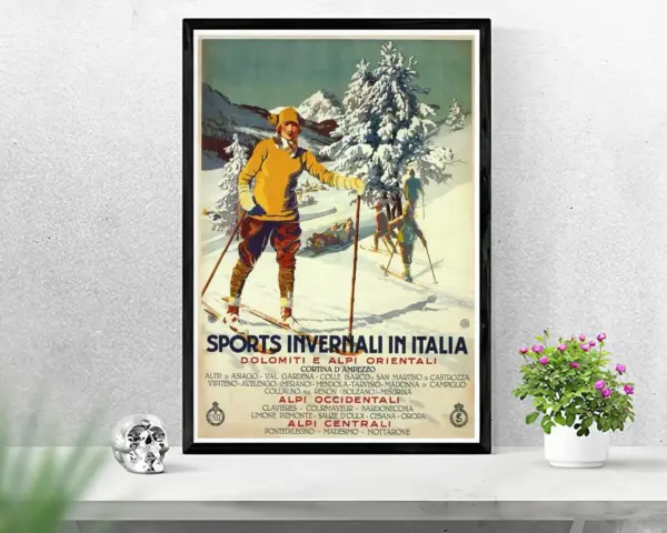 Early 1920S Winter Sports Italy Travel Advert Alps Poster Vintage Travel Poster France Vintage Travel Poster Snowboard Sign Canvas Poster