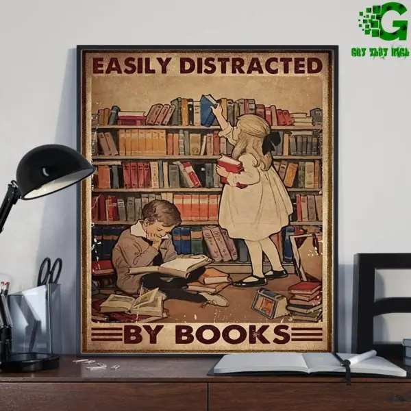Easily Distarcted By Books Poster Book Lovers Wall Art Living Home Decor Wall Decor Best Gift Ever 2