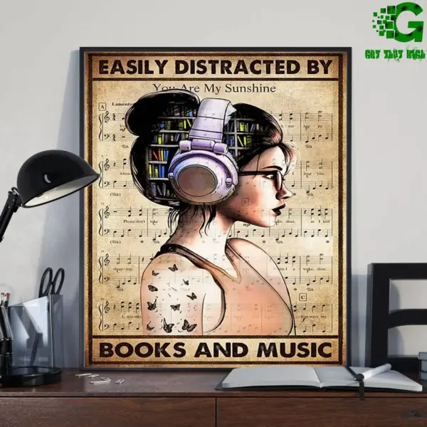 Easily Distracted By Book And Music Poster Wall Art Music Lovers Living Home Decor Wall Decor Best Gift Ever