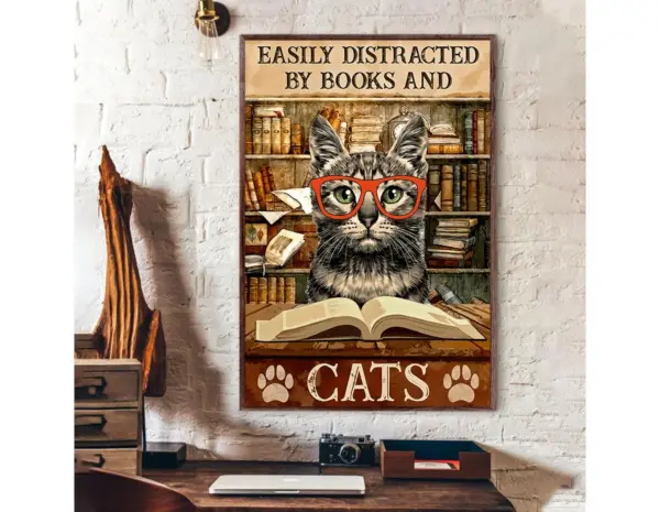 Easily Distracted By Books And Cats Books Poster Wall Decor Home Decor Books Art Print Books Wall Decor Reading Poster Books Lover