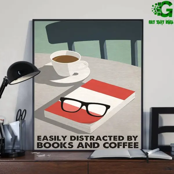Easily Distracted By Books And Coffe Poster Coffee Lovers Wall Art Living Home Decor Wall Decor Best Gift Ever