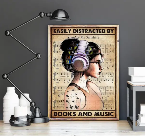 Easily Distracted By Books And Music Vintage Poster Love Book Poster Book Lover Gift Vintage Book Poster Reading Book Poster