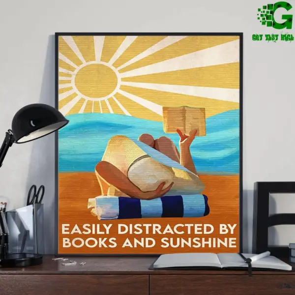 Easily Distracted By Books And Sunshine Poster Wall Art Living Home Decor Wall Decor Best Gift Ever