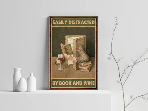 Easily Distracted By Books And Wine Poster Book Art Print Drinking Wine Poster Book Lover Gift Reading Poster Signs For Home