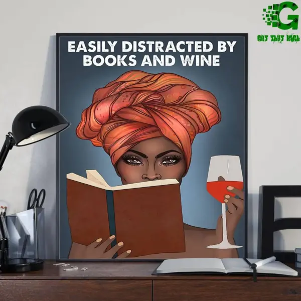 Easily Distracted By Books And Wine Poster Wine Lovers Wall Art Living Home Decor Wall Decor Best Gift Ever