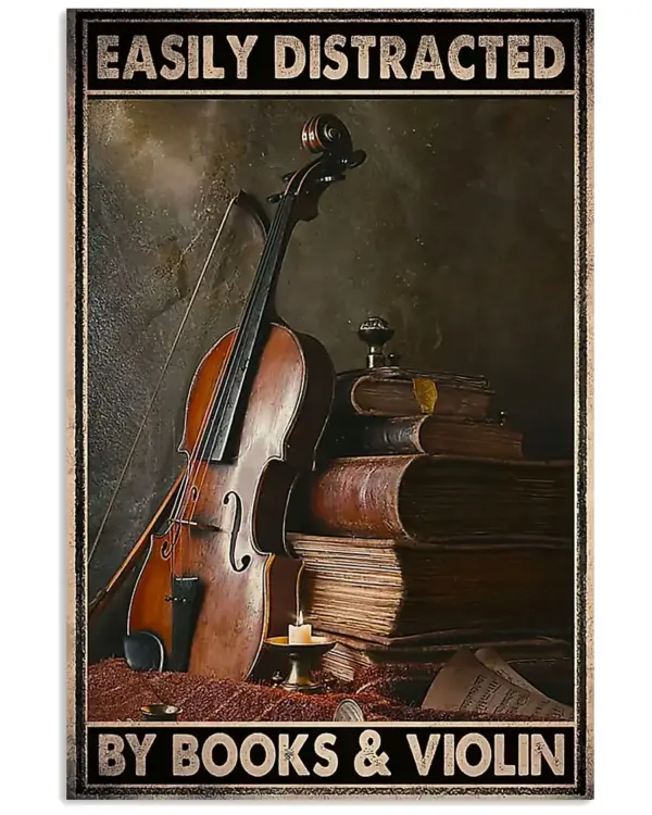 Easily Distracted By Books Violin Poster