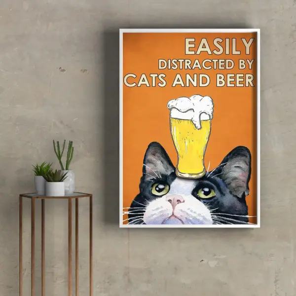 Easily Distracted By Cats And Beer Poster Cat Poster Cat Lovers Gift Cute Cat Best Gift Ever Drink Poster Crazy Cat Beer Print