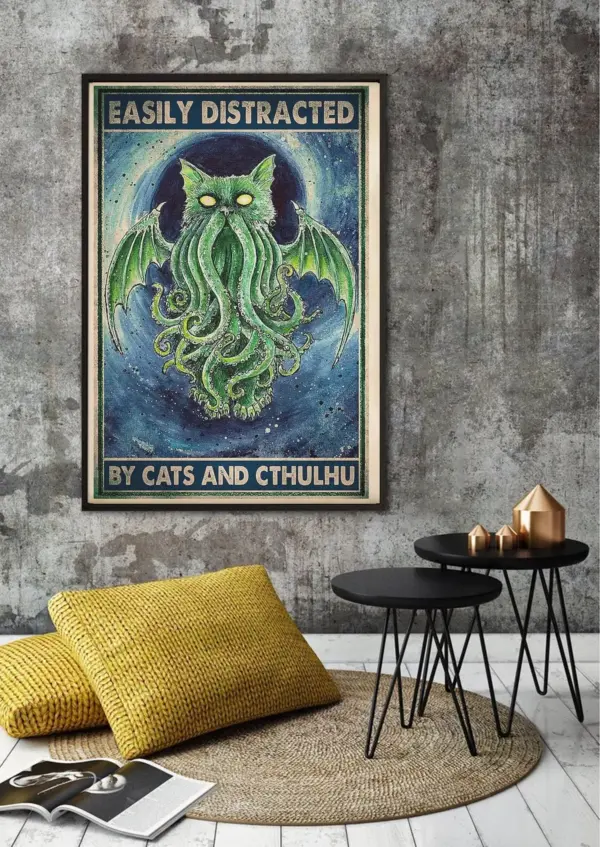 Easily Distracted By Cats And Cthulhu Poster Cat Poster Cthulhu Poster Kitten Lover Poster Octopus Poster Tentacles Poster