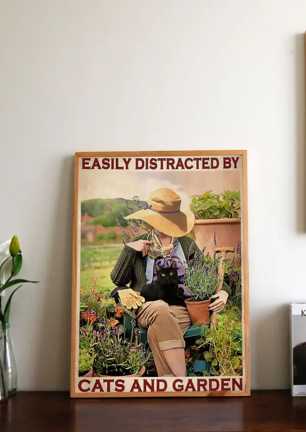 Easily Distracted By Cats And Garden Poster Poster Garden Wall Art Best Gift For Garden Lover Garden Poster Gardening Wall Decor