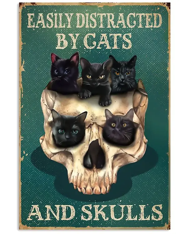 Easily Distracted By Cats And Skulls Poster